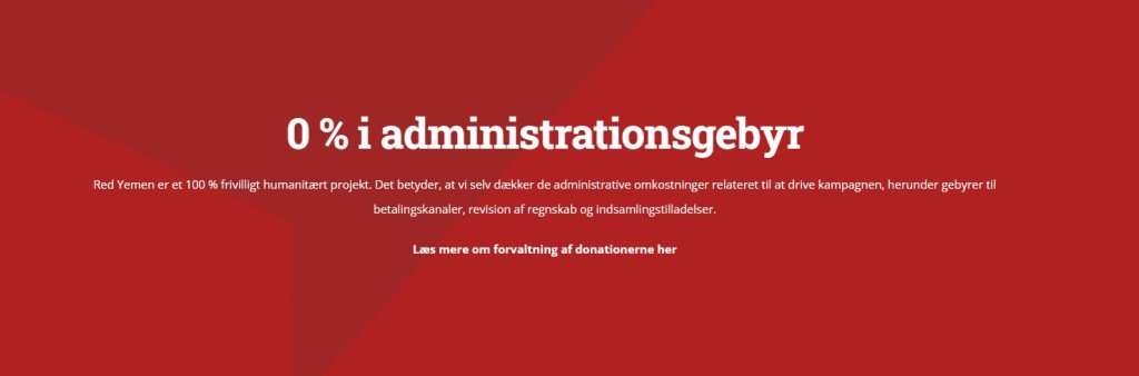 Alle administrative omkostninger relateret til Red Yemens fundraisingsarbejde dækkes af Foreningen Lanternen, således at dine donationer kan gå ubeskåret til Yemen. De administrative omkostninger omfatter gebyrer til bank, MobilePay, PayPal, Reepay samt omkostninger til indsamlingstilladelse, revision af regnskab og promoverede annonceringer.